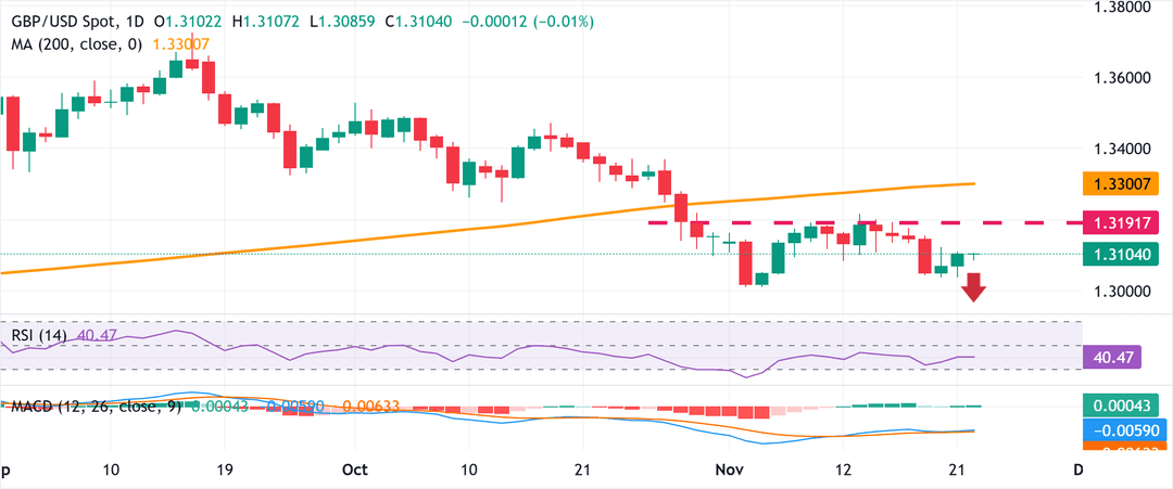 جفت GBP/USD پس از یک افت جزئی در جلسه آسیایی، در ساعت آخر دوباره بالای سطح 1.3100 برگشت، همزمان با کاهش اندک دلار آمریکا (USD) در روز دوشنبه. با این حال، عدم قطعیت مربوط به بودجه بریتانیا و افزایش پیش بینی ها درباره کاهش نرخ توسط بانک انگلستان در ماه آینده باید به عنوان یک مانع برای قیمت های نقطه ای عمل کند.