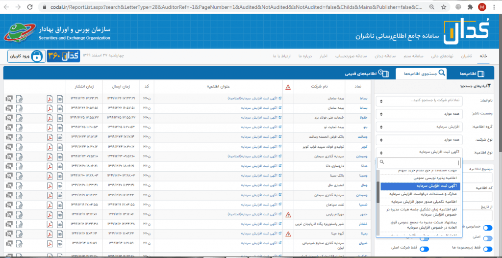 مراحل ثبت افزایش سرمایه و آشنایی با اطلاعیههای مربوط به آن در سامانه کدال